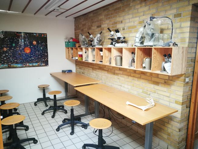 På Ellemarkskolen fokuseres der på at give eleverne plads til at være undersøgende. Til det er der bl.a. indrettet lokaler, hvor eleverne kan arbejde uforstyrret med mikroskopi.